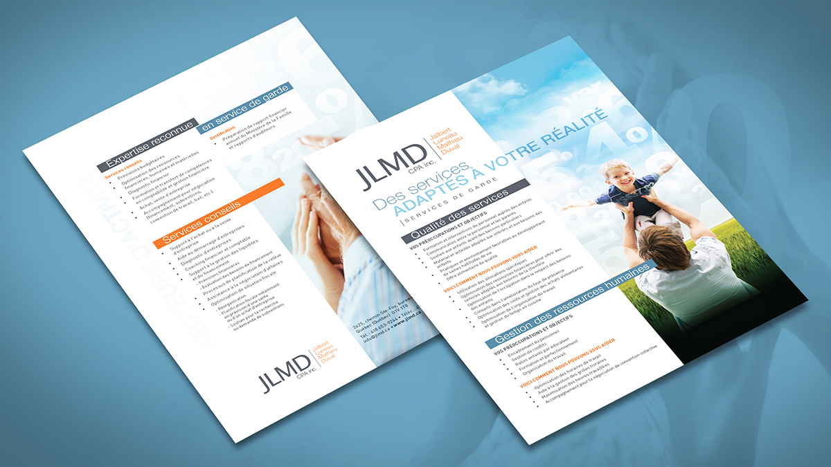 Au fil des ans, JLMD CPA inc. s’est taillé une réputation enviable dans la grande région de Québec. BCI est fière de développer pour eux divers outils de communication efficaces et attrayants.