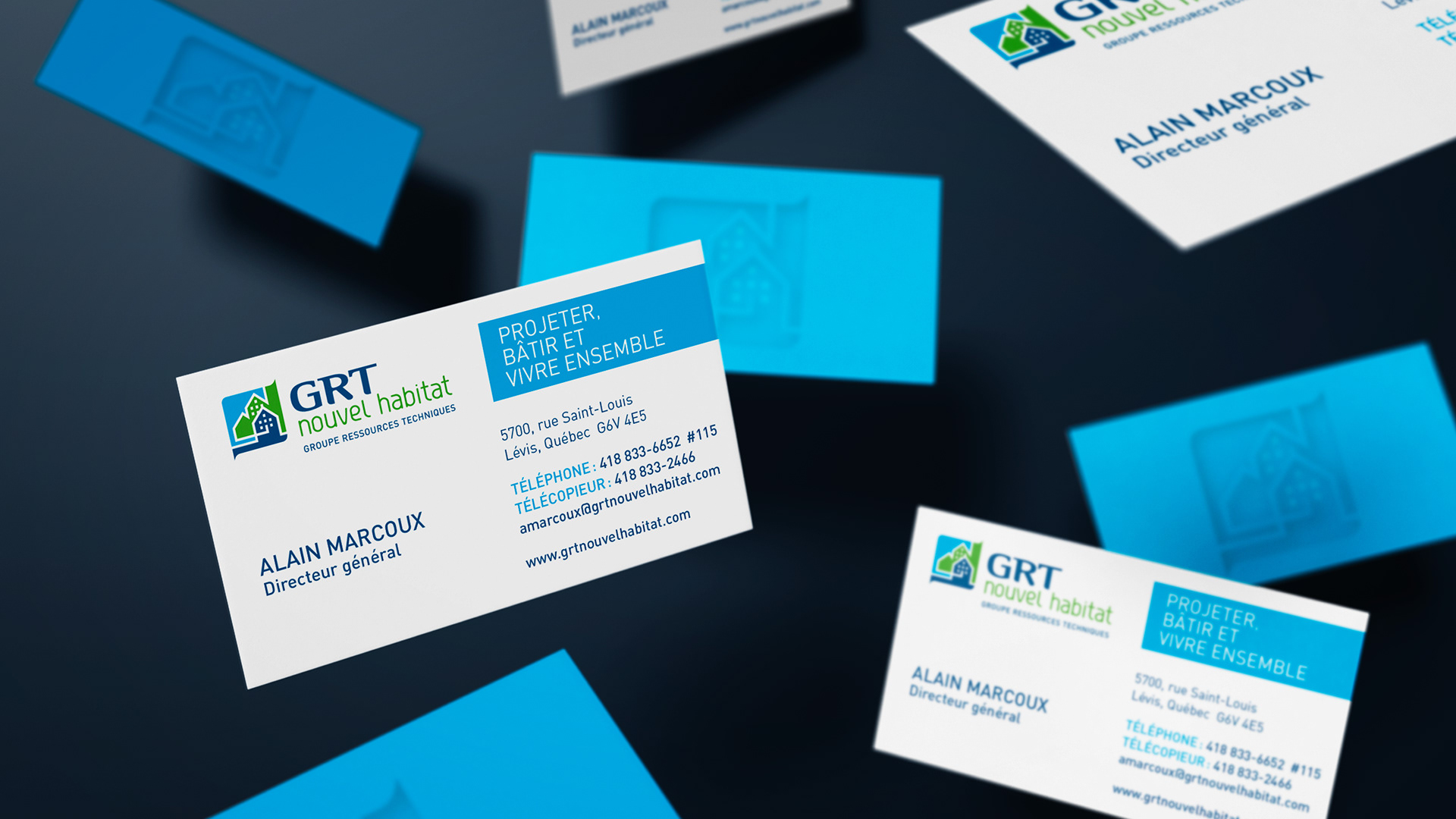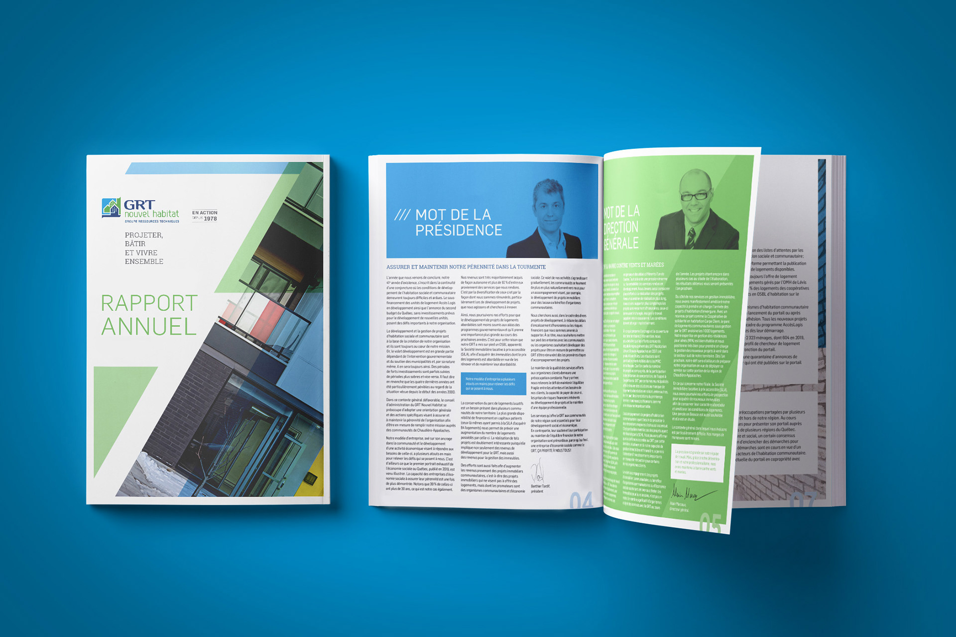 BCI, a dû mettre leur logo à jour puisque le GRT Habitation Lévy est devenu le GRT Nouvel Habitat. Les couleurs et la typographie sont inspirées du premier logo du GRT, nous y avons ajouté une couleur d’accent. À partir de ce logo BCI a décliné la papeterie, une signature courriel et bannière, signalisation, etc. Depuis 2011, BCI est aussi mandaté pour concevoir leur rapport annuel.